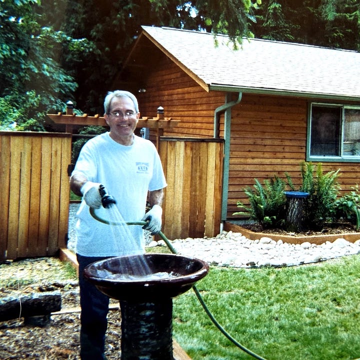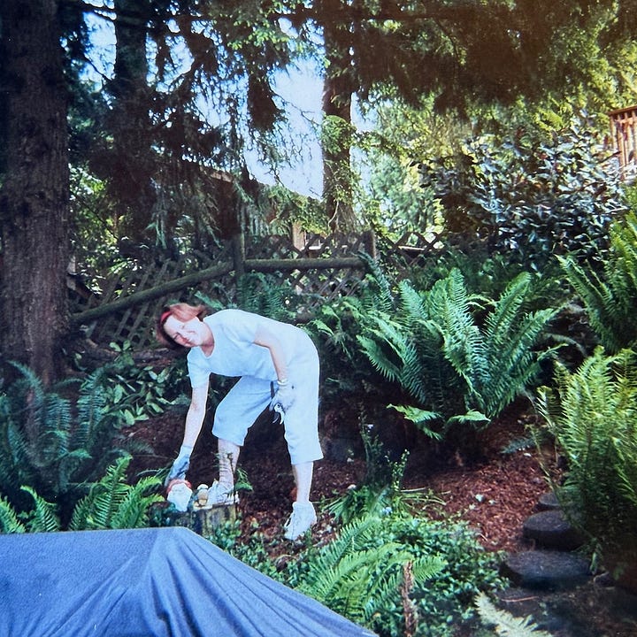 I was freshly 17 and wrapping up my junior year of high school when my mother and I moved into the house. Don drove up to Woodinville from his apartment in Federal Way almost every weekend to bust his ass in the yard: felling gigantic evergreens that threatened to topple onto the roof; constructing a retaining wall with impossibly heavy railroad ties; clearing out grass and leveling the land to set the stage for a spectacular terraced garden.